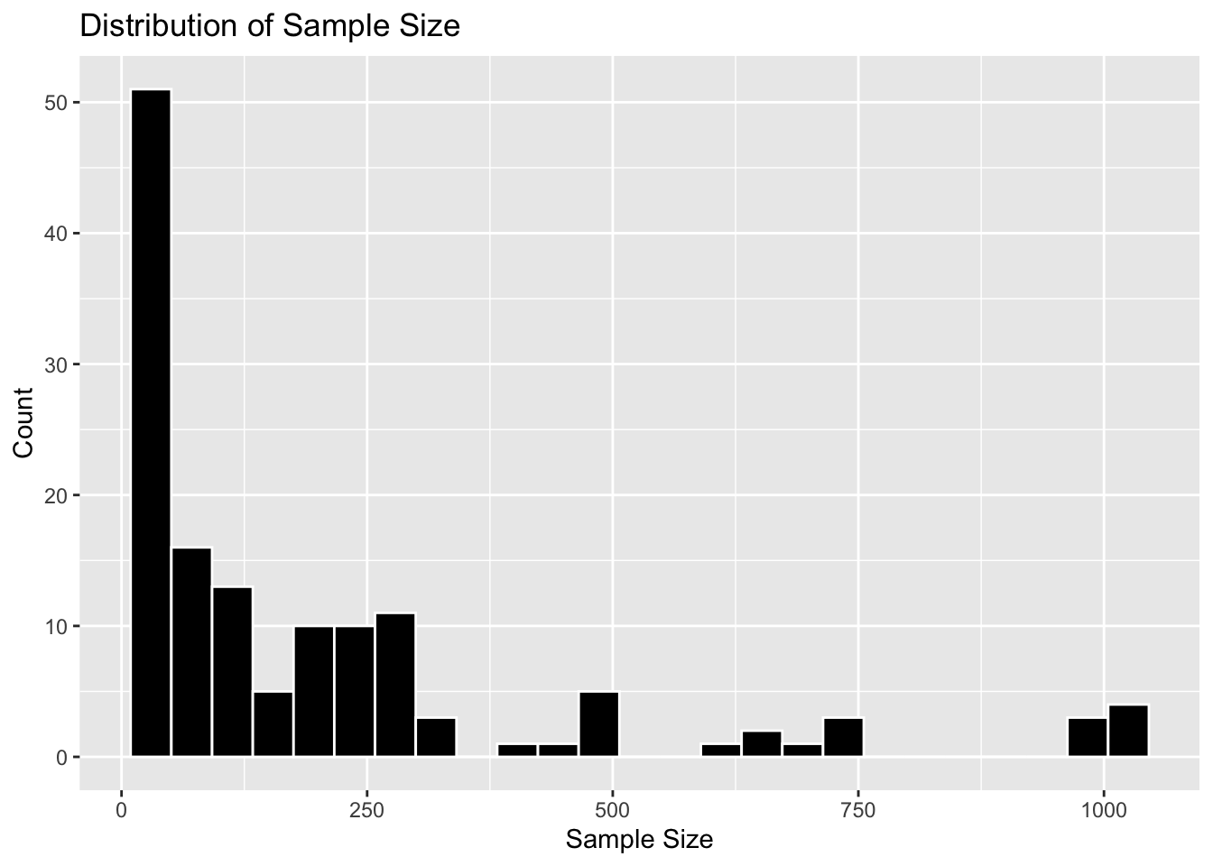 Next, the sample sizes. In order to recreate the distribution shape of the cleaned dataset above, I specified the prompt to produce a left-skewed distribution.